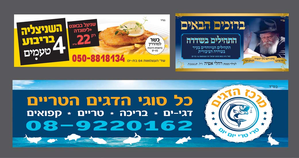 שילוט ניתן להזמין שלטים על גבי נייר פיויסי בהדפסה צבעונית מלאה לבחירתכם. גודל השלט משתנה ומותאם אישית לשימוש שלו.